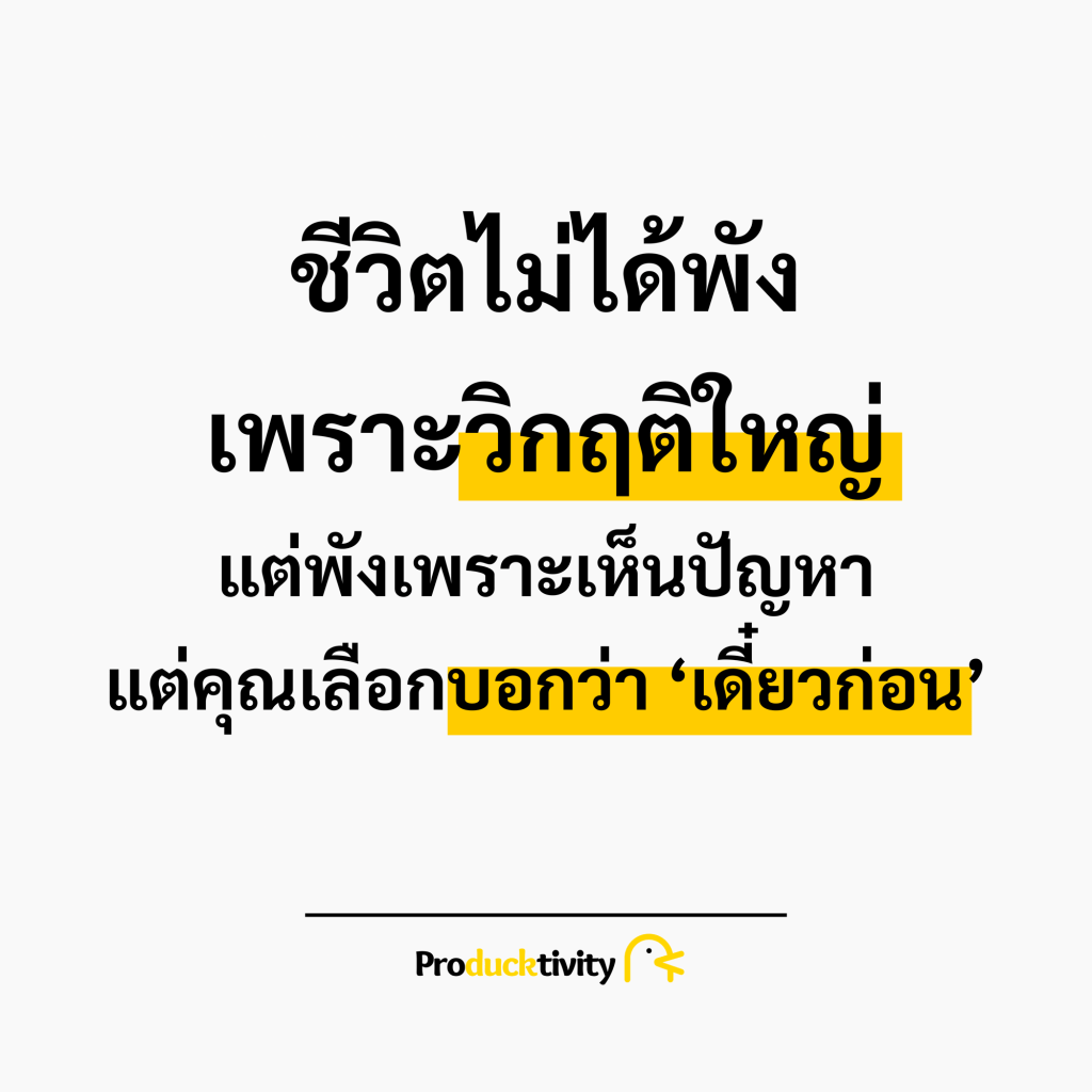 ดังนั้น แทนที่จะรอให้หลังคารั่วทั้งบ้านแล้วค่อยโพสต์เฟซบุ๊กยาว ๆ ว่า “ชีวิตสอนให้รู้ว่า…” อยากมีชีวิตที่ดีขึ้นให้เริ่มจากอะไรที่ทำได้ก่อนเลย