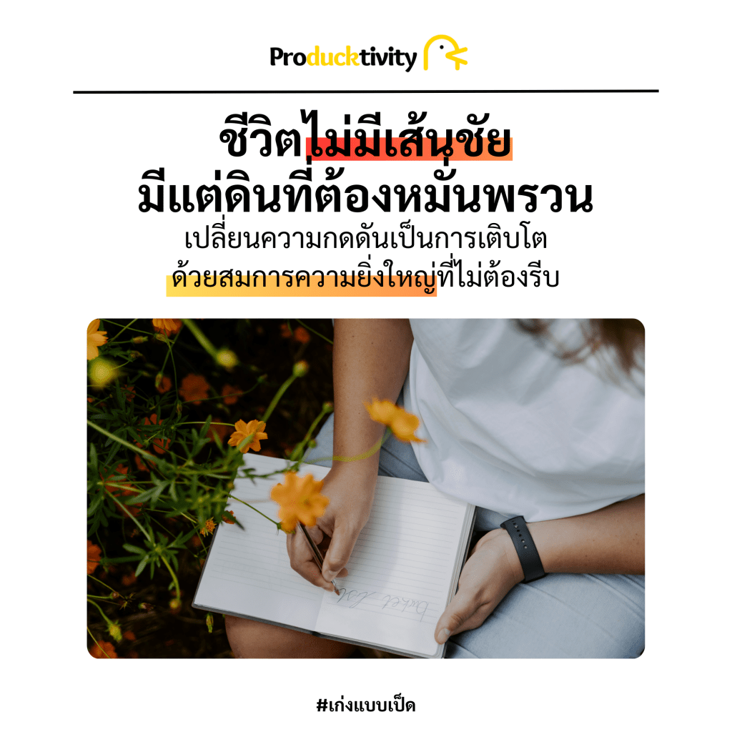 ลองเปลี่ยนจากการวิ่งเข้าเส้นชัย มาเป็นการค่อยๆ รดน้ำพรวนดินให้กับชีวิตในทุกๆ วัน ไม่ต้องหวังดอกผลที่ใหญ่โตในชั่วข้ามคืน แต่ให้เชื่อมั่นในพลังของการสะสมทีละเล็กทีละน้อย