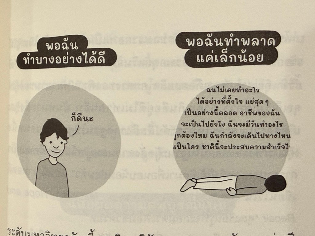 ในวันที่เราทำบางอย่างได้ดี ประสบความสำเร็จตามเป้าหมาย เสียงในหัวของเราก็บอกเสียงอ่อยๆ ว่า ‘ก็ดีนะ’ แล้วเราก็ปล่อยมันผ่านไป แต่ในทางกลับกัน เมื่อเกิดความผิดพลาดเพียงเล็กน้อย (ย้ำว่าเพียงเล็กน้อย) เสียงในหัวกลับคำรามกึกก้อง มันไม่ได้บอกแค่ว่า “แกทำพลาด” แต่มันลากยาวไปถึง “ฉันมันแย่ที่สุด” “ชีวิตนี้คงไม่สำเร็จ” หรือ “ฉันกำลังเดินหลงทางใช่ไหม”