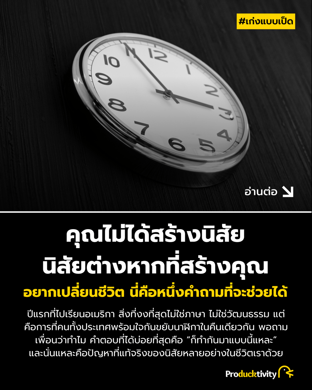เพราะนิสัยที่ดีที่สุดไม่ใช่นิสัยที่ทำมานานที่สุด แต่คือนิสัยที่คุณเลือกแล้วว่ายังต้องการและจำเป็นสำหรับเป้าหมายในชีวิตอย่างแท้จริง